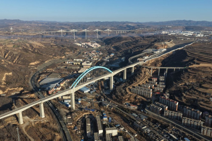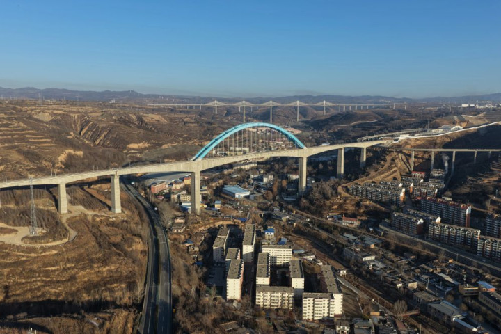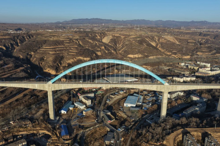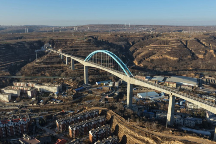 西安至延安高速铁路关键控制性工程王家河特大桥位于陕西省铜川市王益区,是西延高铁全线跨度最大、高度最高的桥梁。桥梁全长1066米,其主跨采用248米连续刚构加拱组合结构,桥面距沟底高达105米,是国内高速铁路无砟轨道桥梁中同类型结构的跨度与高度双项纪录保持者,对保障西延高铁全线贯通具有决定性意义。
