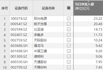 上证报中国证券网讯(记者费天元)Choice数据显示,12月26日,资金净流入额排名前十的个股依次是:阳光电源、航天发展、比亚迪、多氟多、天际股份、福龙马、中国卫通、德明利、天通股份、天赐材料。其中股票杠杆配资网,多氟多、天际股份、天赐材料等均属于锂电池板块。
